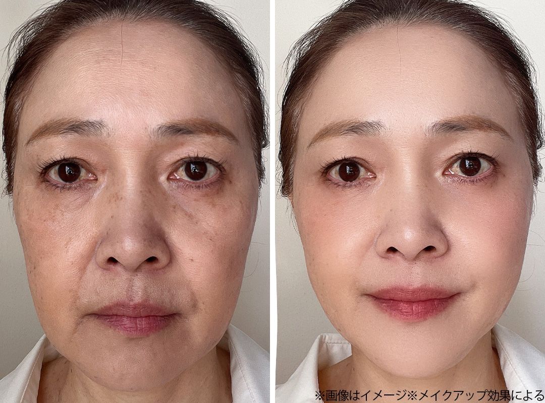目尻や口元などシワの気になる部分に馴染みやすい! 下地がいらないので、すぐにメイクが終わるのも助かる〜!